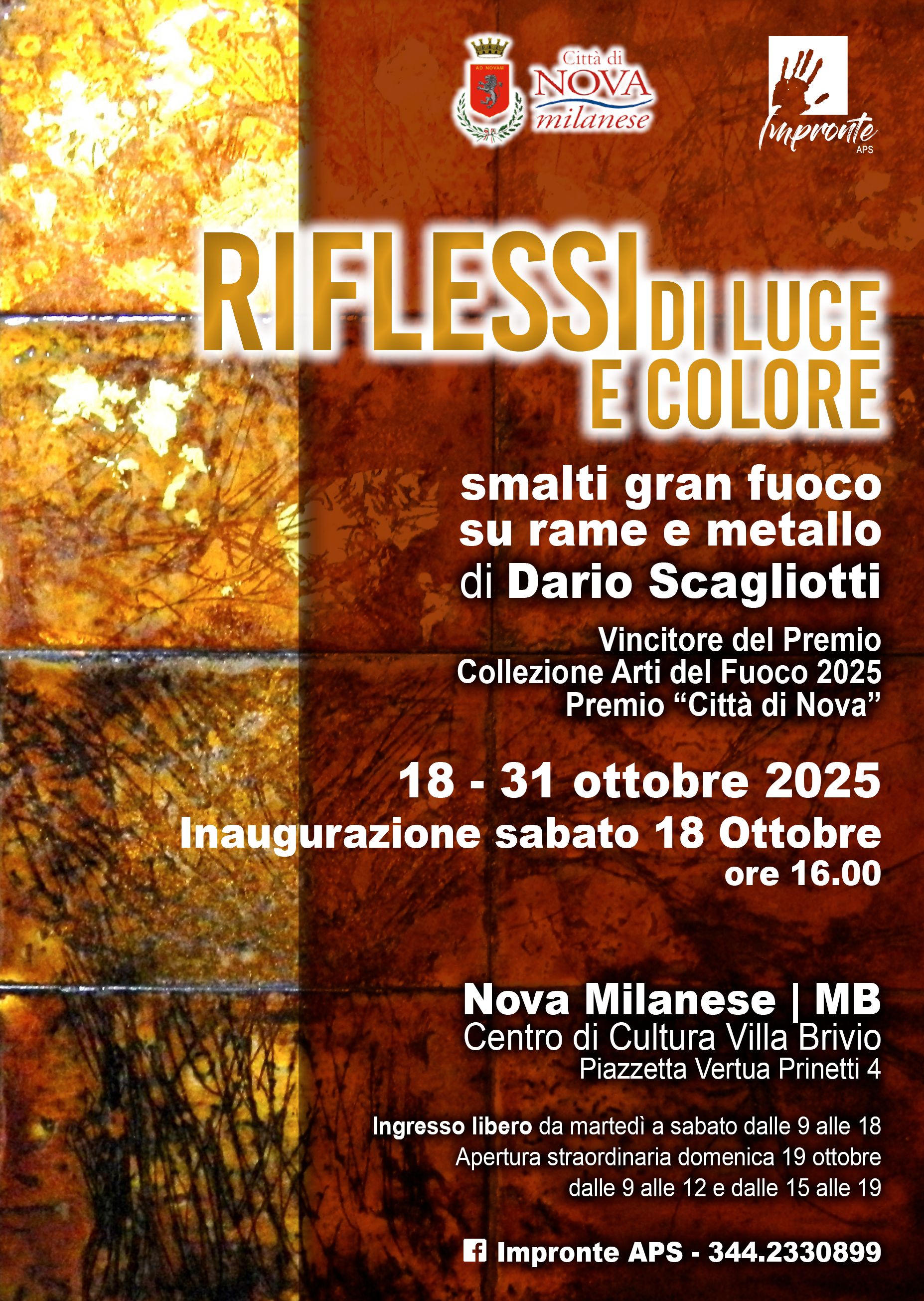 Il Centro di Cultura Villa Brivio è lieto di ospitare, da sabato 18 a venerdì 31 ottobre 2025, la mostra personale dell’artista Dario Scagliotti, vincitore del Premio Collezione Arti del Fuoco 2025, a cura dell'associazione culturale Impronte APS.