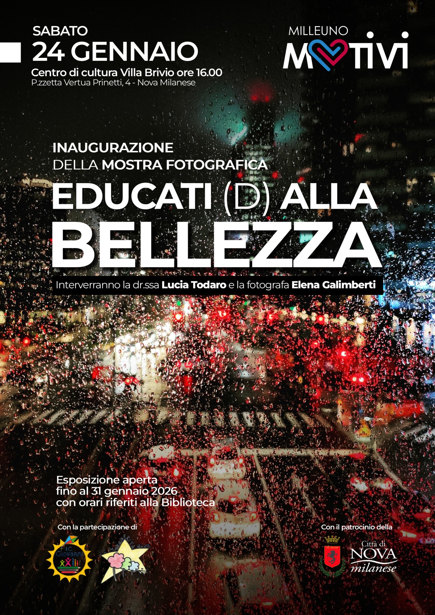 L’associazione Milleunomotivi, con la partecipazione degli Istituti Comprensivi Giovanni XXIII e Margherita Hack e con il patrocinio del Comune di Nova Milanese, presenta la mostra fotografica “Educati (d)alla bellezza”.