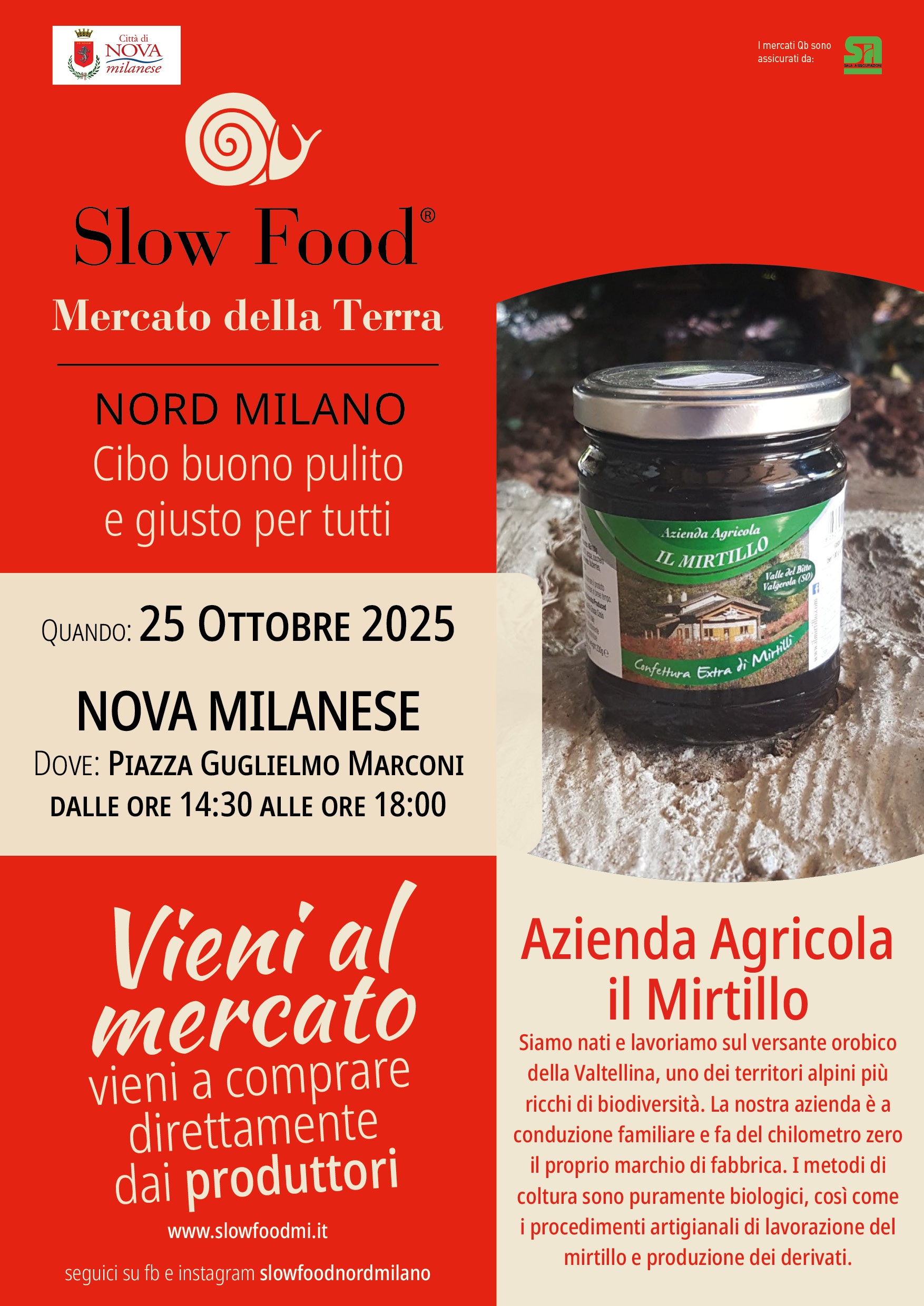 Tra i presenti ci sarà anche l’azienda agricola "Il Mirtillo", una realtà a conduzione familiare situata sul versante orobico della Valtellina, che ha fatto del chilometro zero il proprio marchio di fabbrica. I metodi di coltivazione sono biologici, così come artigianali sono i procedimenti di trasformazione del mirtillo e la produzione dei suoi derivati.