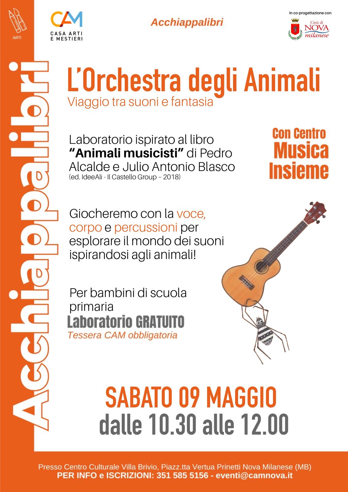 Il laboratorio, intitolato “L’orchestra degli animali. Viaggio tra suoni e fantasia”, prende spunto dal libro “Animali musicisti” di Pedro Alcalde e Julio Antonio Blasco. I bambini potranno giocare con la voce, il corpo e semplici strumenti a percussione per scoprire i suoni della natura e degli animali, stimolando creatività e ascolto in modo divertente e coinvolgente. A guidarli sarà il Centro Musica Insieme, che accompagnerà i piccoli partecipanti in questo viaggio musicale e immaginativo.