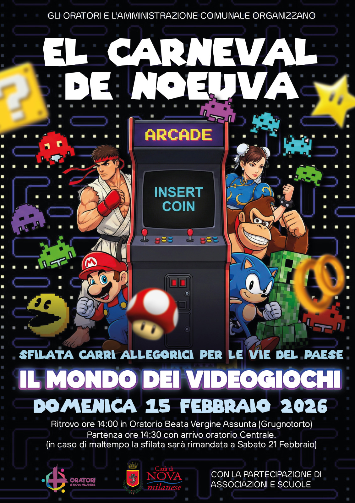 Gli Oratori insieme all’Amministrazione Comunale di Nova Milanese vi invitano a vivere un Carnevale super colorato e…pixelato!