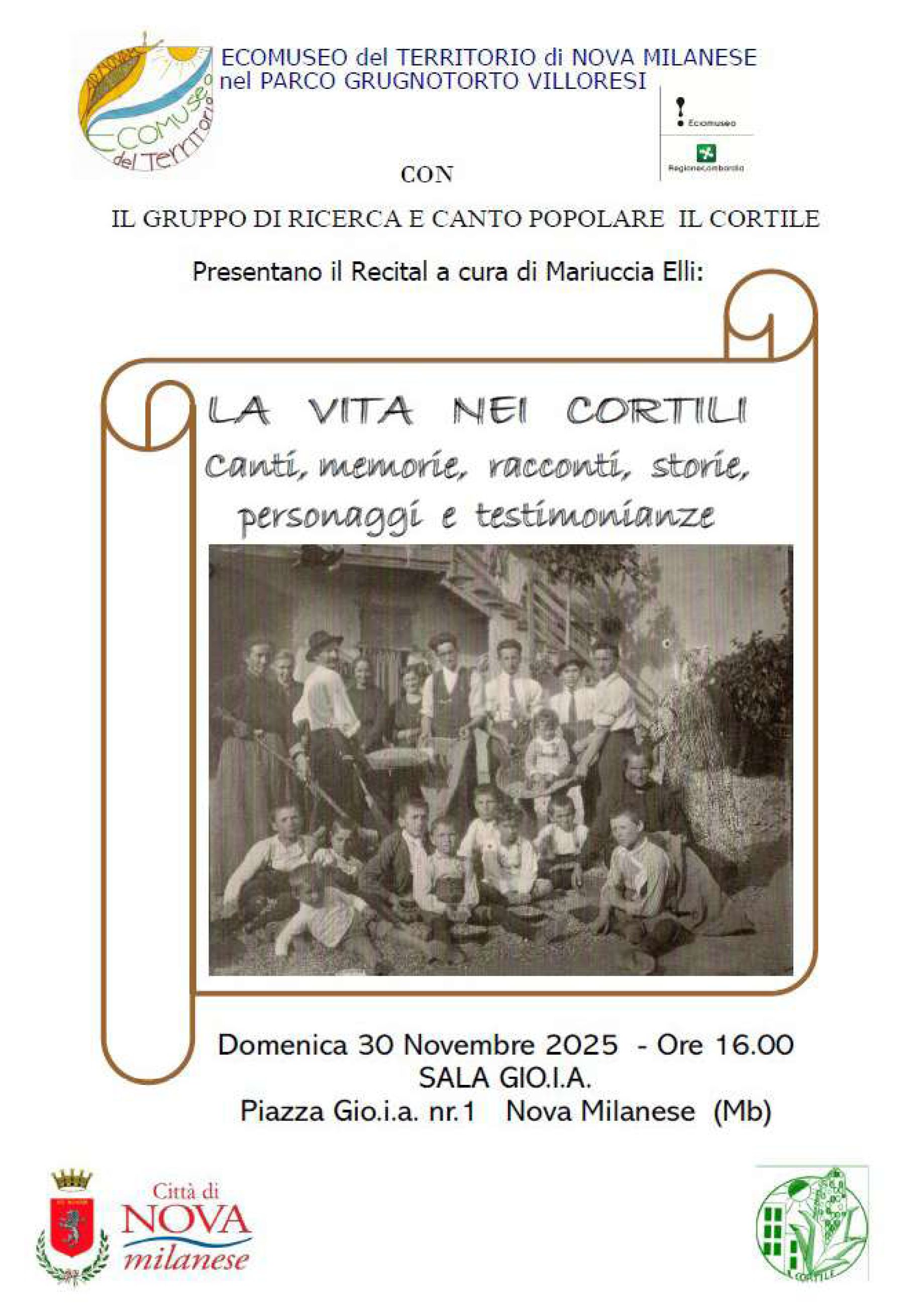 Lo spettacolo è realizzato dal Gruppo di Ricerca e Canto Popolare Il Cortile e curato da Mariuccia Elli, che guiderà il pubblico attraverso un affascinante percorso tra tradizione, memoria e cultura dei cortili, tra musica e narrazione.