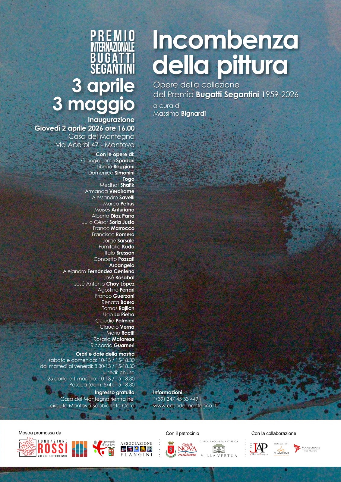 L’iniziativa è promossa dalla Fondazione Rossi e dalla Provincia di Mantova, in collaborazione con l’Associazione Culturale Flangini e la Libera Accademia di Pittura, con il patrocinio del Comune di Nova Milanese.
