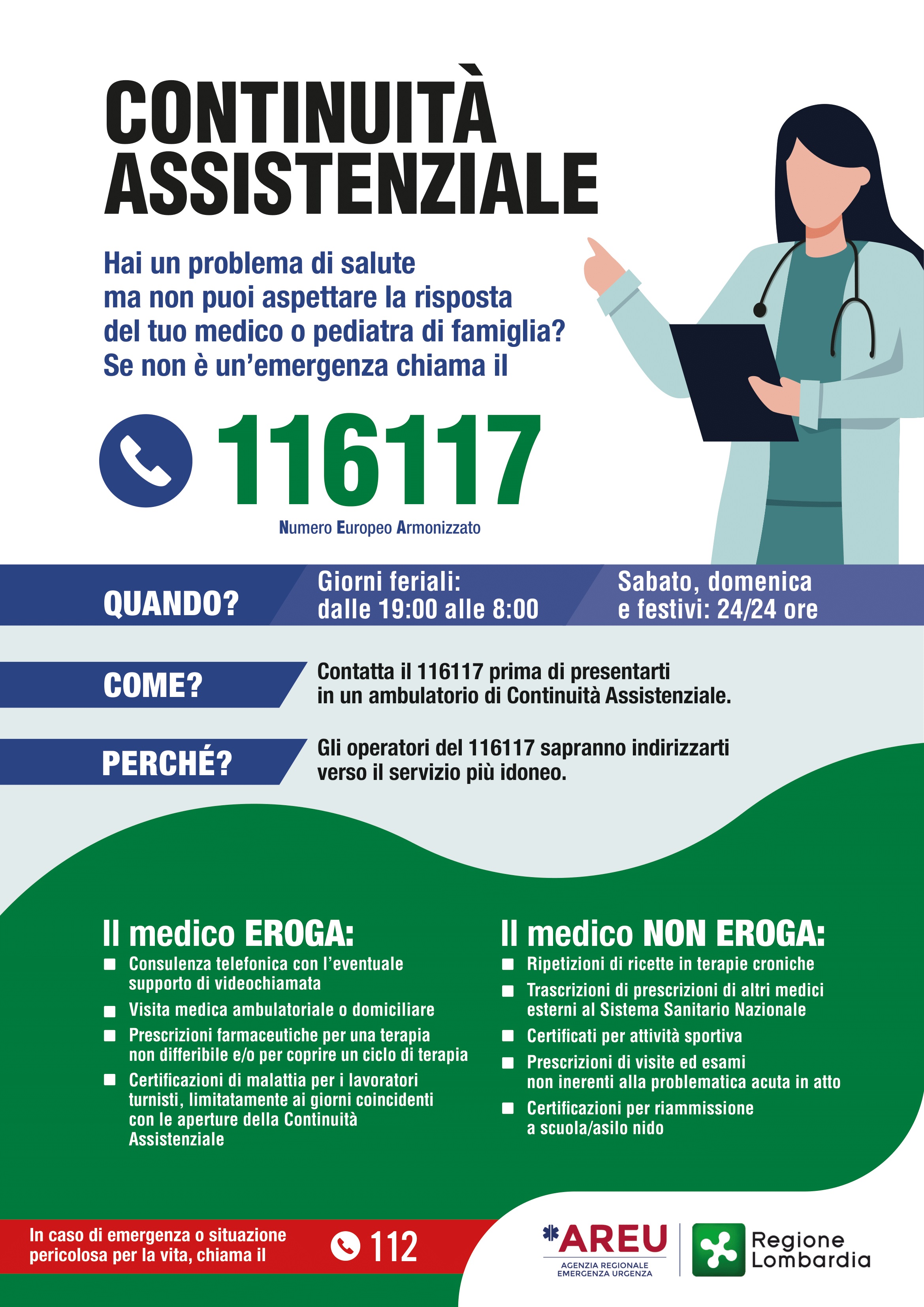 Si ricorda che, prima di accedere agli ambulatori, è necessario contattare il numero 116117, attivo:
